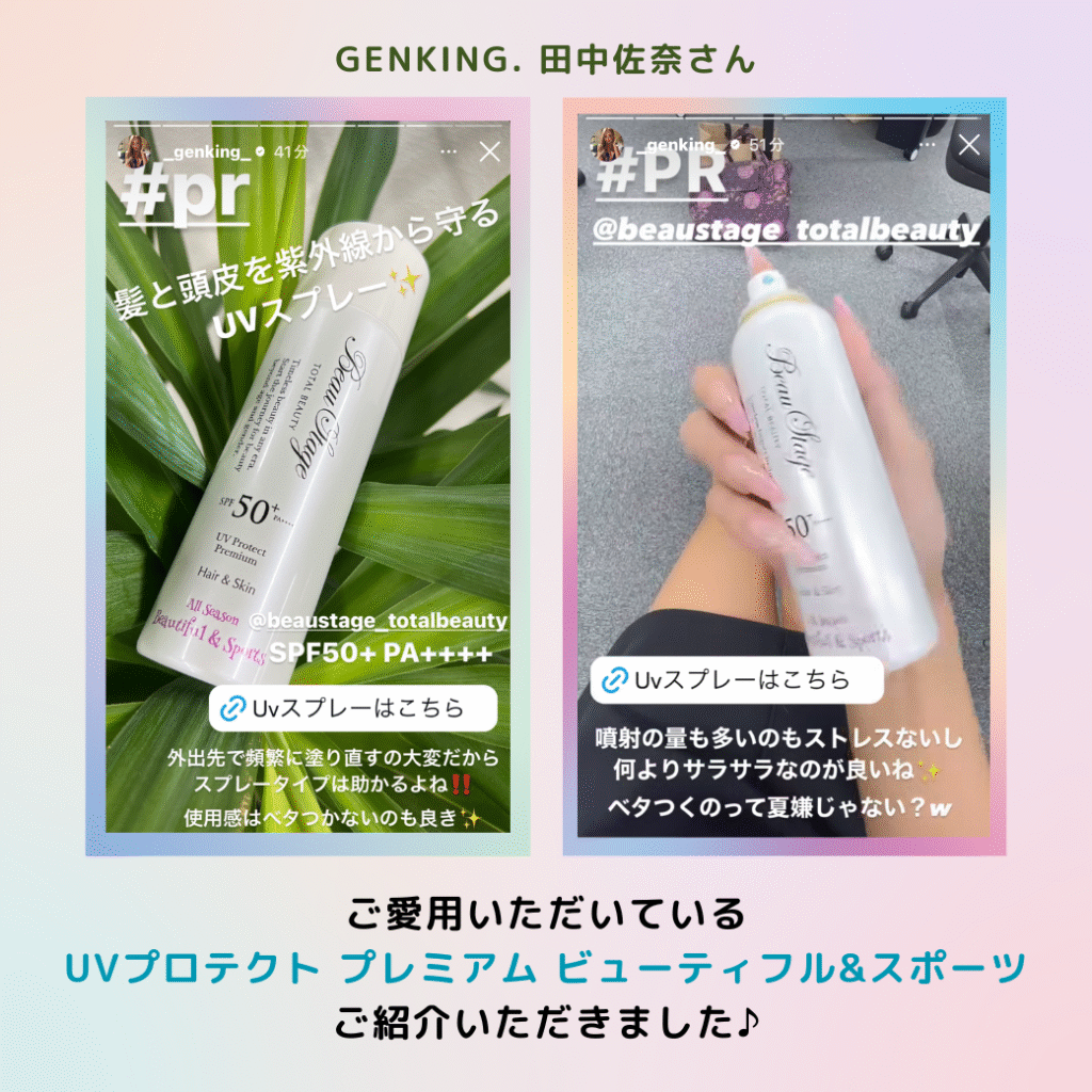 GENKING. 田中佐奈さんにビューステージ UVプロテクト プレミアム ビューティフル&スポーツについてInstagramにてご紹介いただきました。